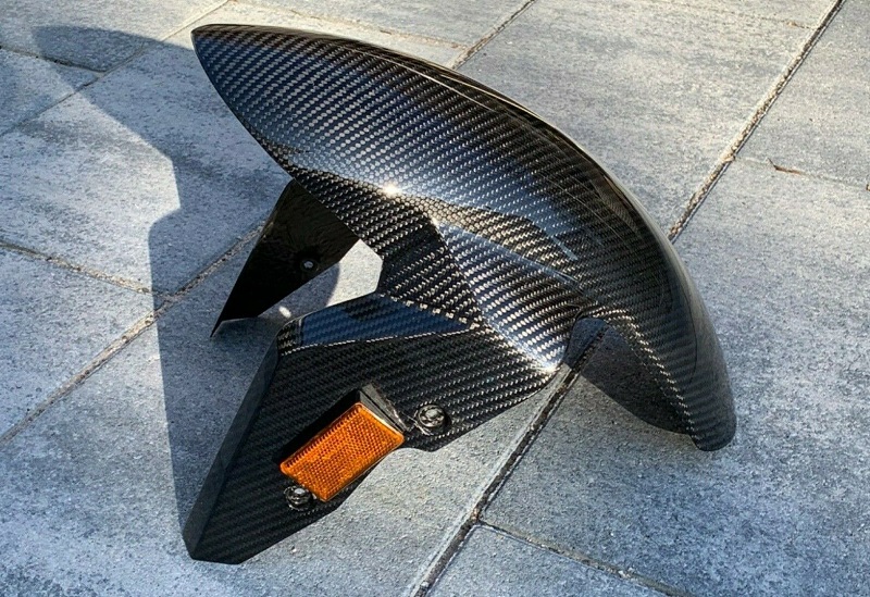 Wie alle Teile von Ilmberger werden die Carbonteile nach der Fertigung nochmals extra mit Kunststoff beschichtet. Neben der verbesserten Optik erhöht / verbessert das Carbon auch die Steifigkeit der Verkleidung. Zusätzlich verringert sich das Gewicht gegenüber dem Original – Bauteil.