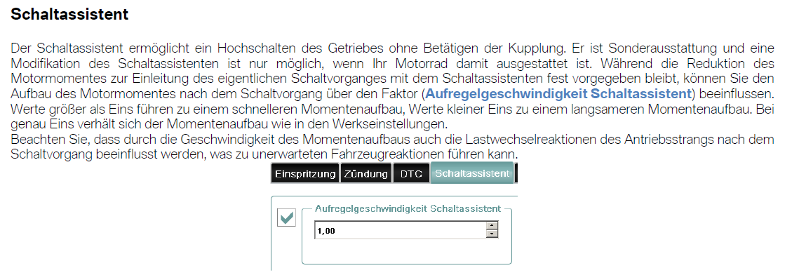 Da können Zahlen hinterlegt werden welche wohl das Ansprechverhalten nach dem Schaltvorgang verändern... hab ich das so richtig verstanden? Was gibt mann da ein? Ist nicht immer volle Power das beste oder zerlegt das mein Getriebe? Und welcher Wert ist da sinnvoll?