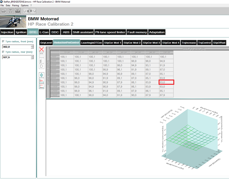 ich habe mir eine BMW S1000RR MÜ zugelegt und arbeite mich derzeit in die DTC (im RCK1/2) ein.