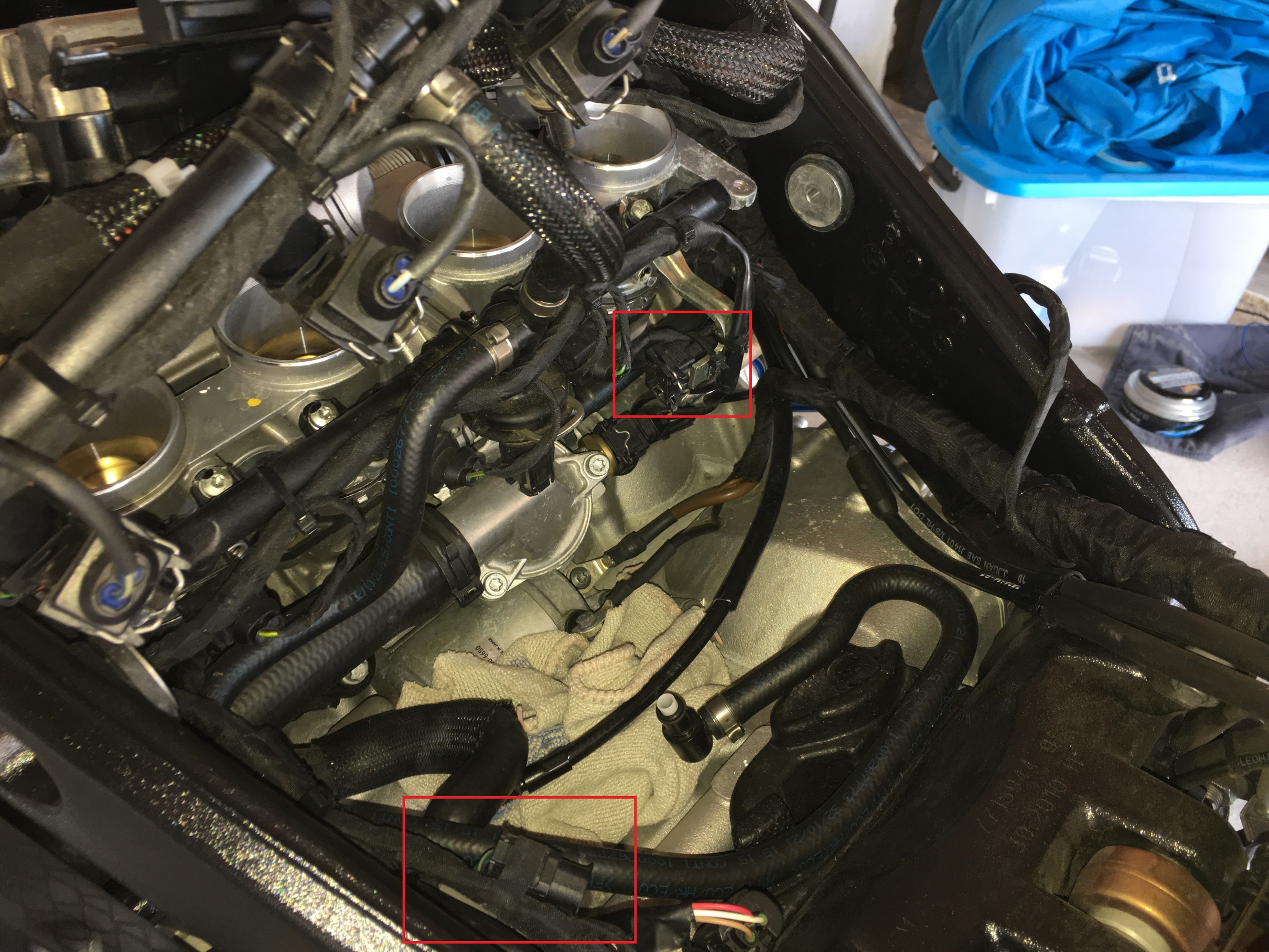 einen Stecker konnte ich nun schon lokalisieren für was dieser Gedacht sein sollte. Es geht um den Stecker der rechts an der Drosselklappe fest gemacht ist. (Bild 1)