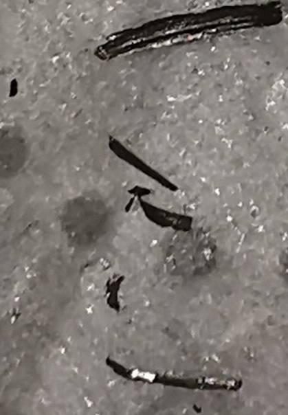 Die Späne liegen auf einem Zewa, es ist stark gezoomed, vlt kann man sich das Muster vom Zewa als Maßstab nehmen.