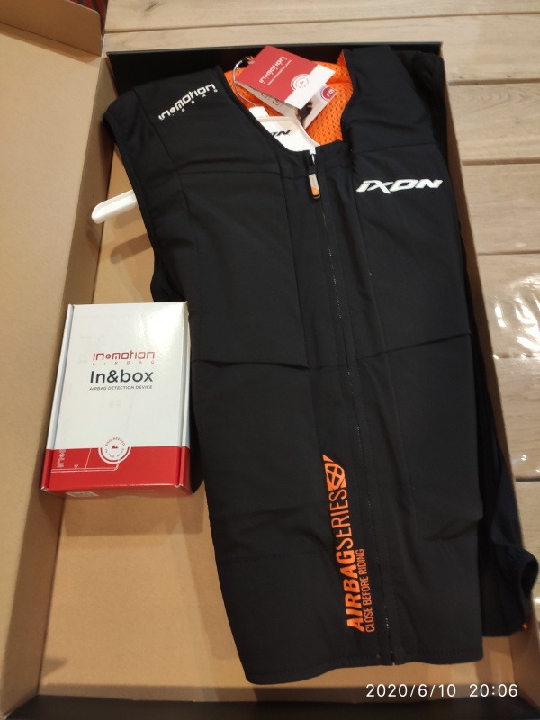 Man kann auch die Weste von Held kaufen. Die hat das gleiche System mit der in&Box ( Elektronik und Auslösung) allerdings hat Held ein Schlaufensystem um die Weste mit der Kombi oder Jacke zu fixieren. Wenn man meint dass es vom Platz her passt beim Einteiler wird sicherlich ein Schneider in der Nähe in der Lage sein etwas für die Schlaufen in den Kombi zu nähen.