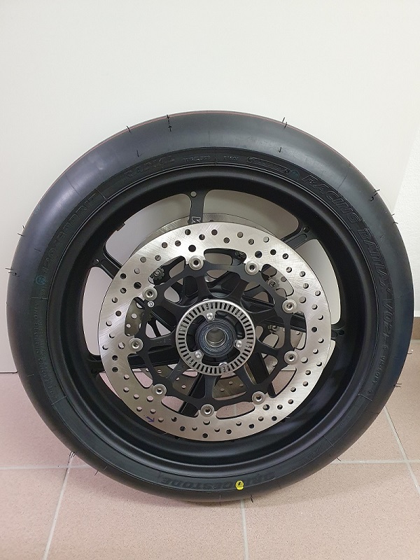 - Vorderradfelge PVM MIT Reifen und allen Anbauteilen: 8300g (Bridgestone V01)