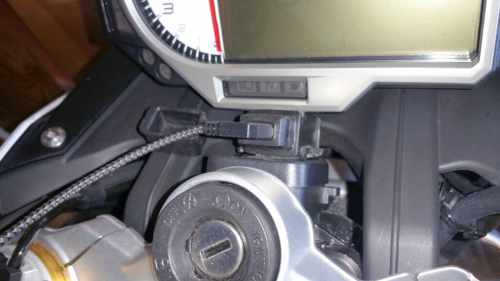 Ich habe mir beim Kauf der Maschine in der BMW Niederlassung direkt eine USB Steckdose in die Front einbauen lassen.