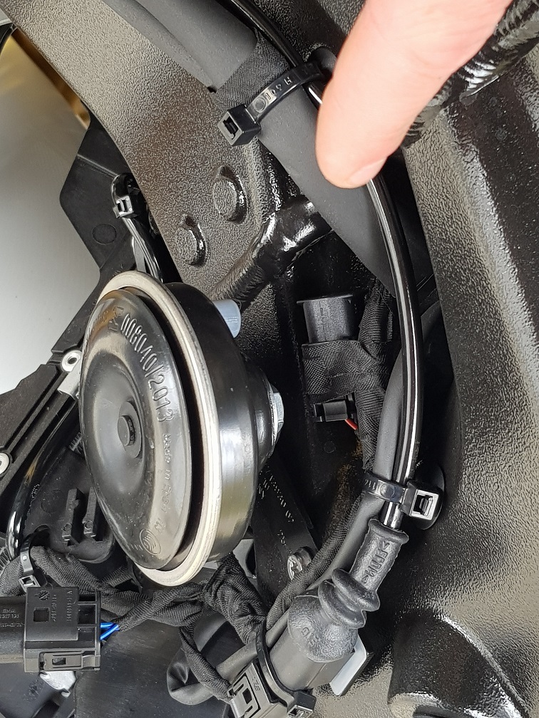 1) Steckverbinder linke Seite direkt hinter der Hupe liegend; ist mit Gewebeband umwickelt