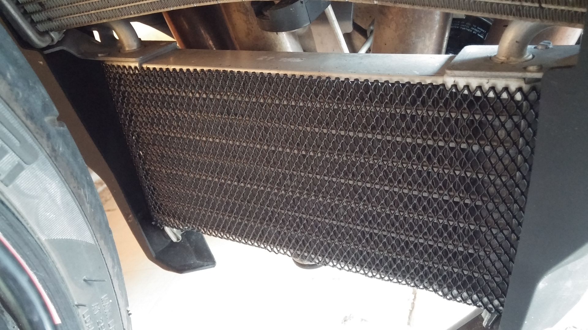 erasage hat geschrieben:Wie versprochen ein Bild von meiner Eigenbaulösung. Im hinteren (nicht sichtbaren) Bereich des Ölkühlers mit 4 Kabelbindern fixiert. Einbau, zuschneiden und biegen des Gitters ist denkbar einfach, vor allem wenn man einen Dremel hat. Materialaufwand max. 5 eu. Wasserkühler bleibt wie er ist, da verirrt sich hoffentlich nicht so schnell ein Stein hin. Bugspoiler ist in dem Bild noch demontiert.