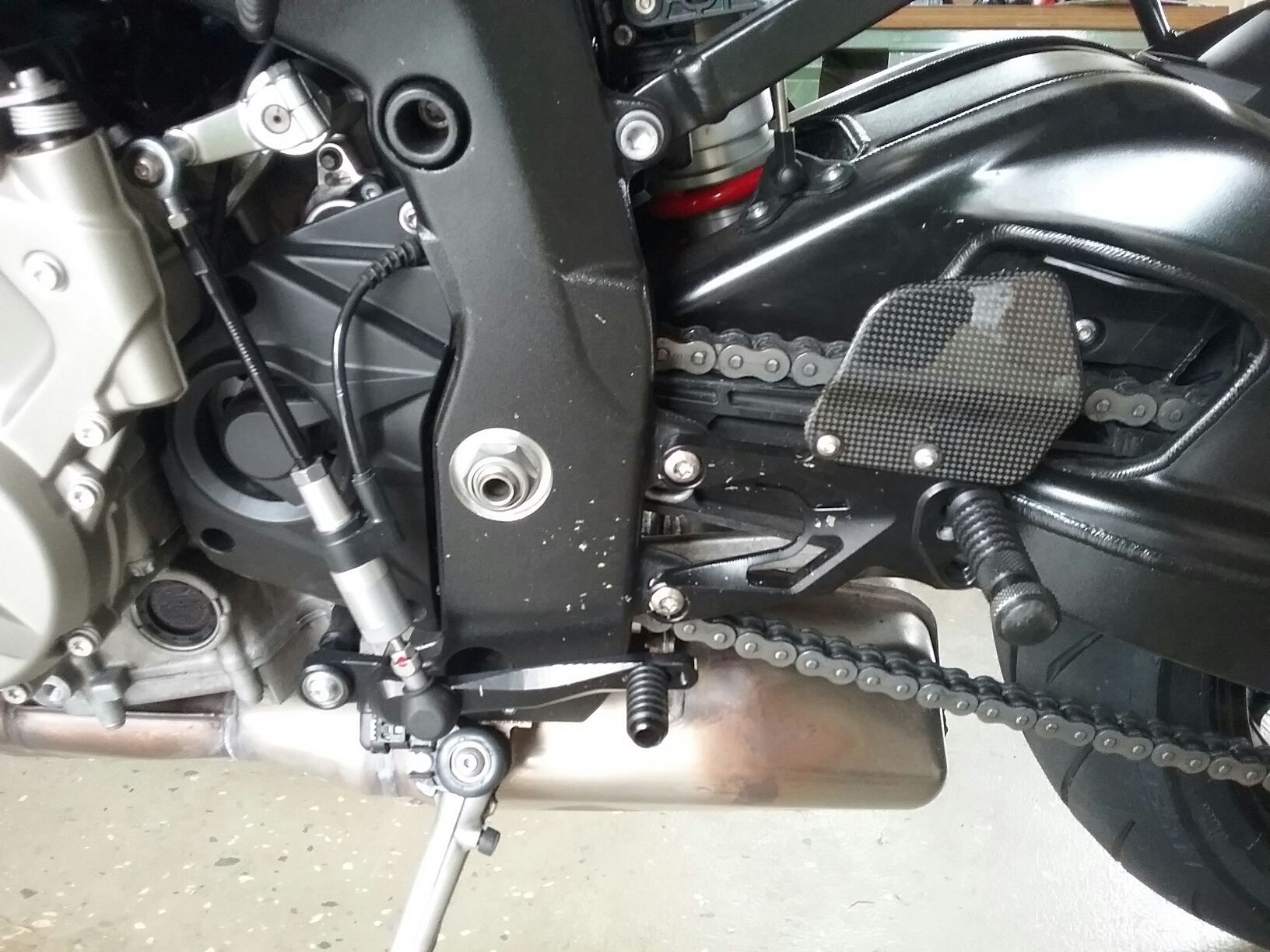 Ein Bremslichtschalter zur Zubehör Rastenanlage wird übrigens nicht benötigt,die S1R hat nen Sensor im Hydraulikkreislauf des Bremssystems,der bei Druckänderung das Bremslicht aufleuchten lässt,nur der Vollständigkeit halber hier erwähnt,ich wollte nämlich nen Schalter dazu kaufen aber die Gilles Leute haben mir das dann erklärt.