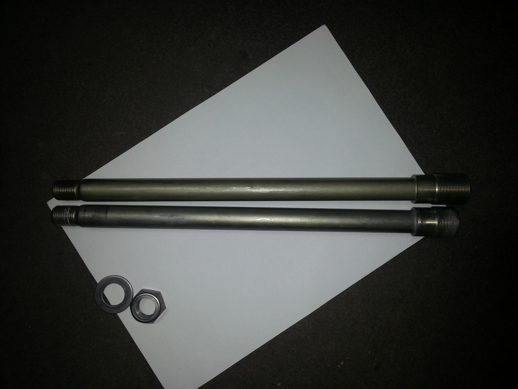 Nun zu den Preisen. Der Preis für Schwinge und Umlenkung bei angelieferter Schwinge ist 586,-€. Die längere Schwingenachse mit Mutter 110,-€. Dies für Selbstschrauber.