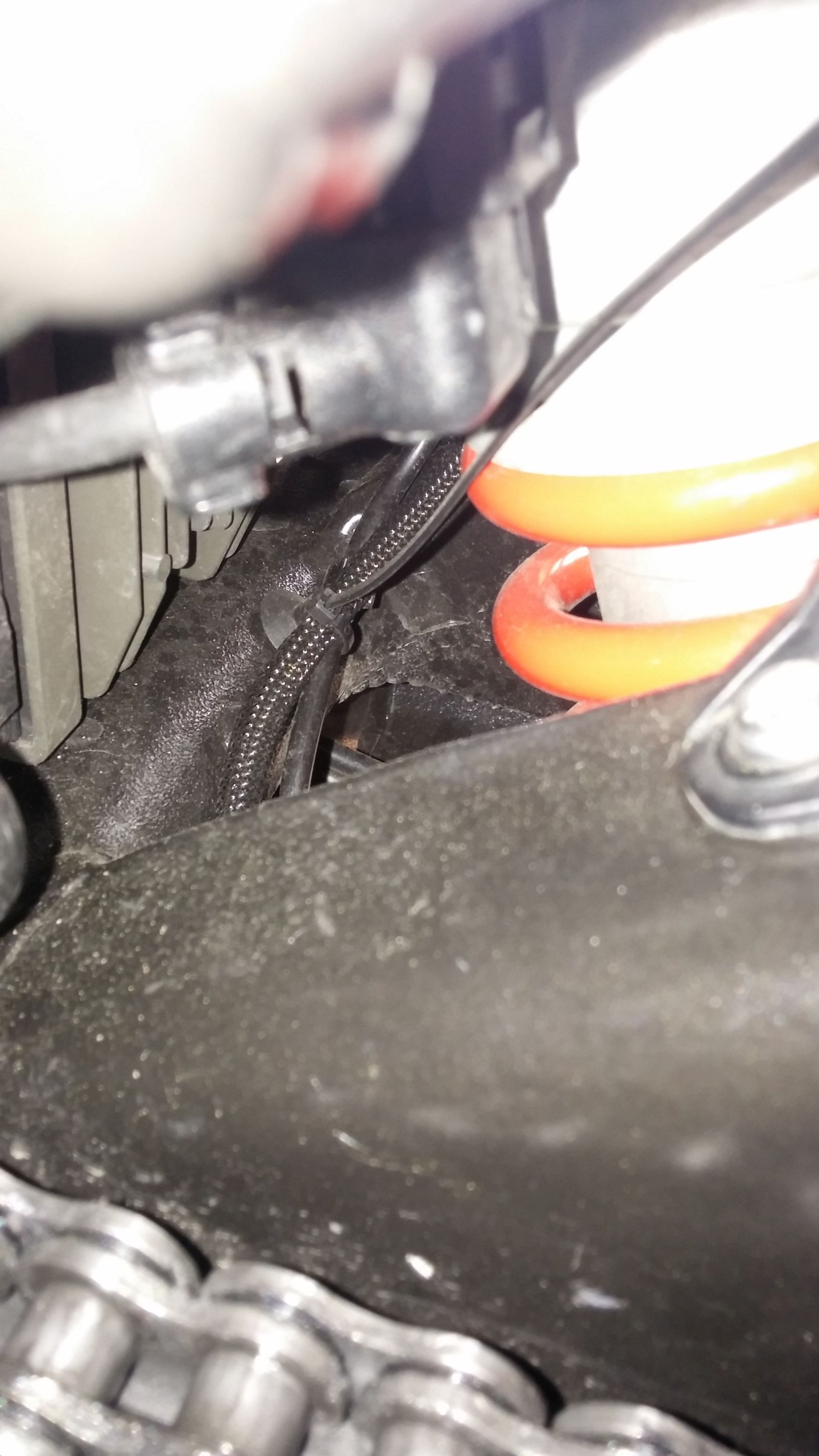 Die Schlauchführung geht im Umlenkpunkt exakt an der gleichen Stelle vorbei wie das Kabel vom ESA Federbein.