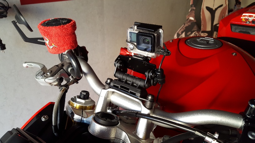 Durch das Umgestalten (kein Basteln) des sw-motech Halters habe ich nun Kamera+Navi auf dem Halter verschraubt.