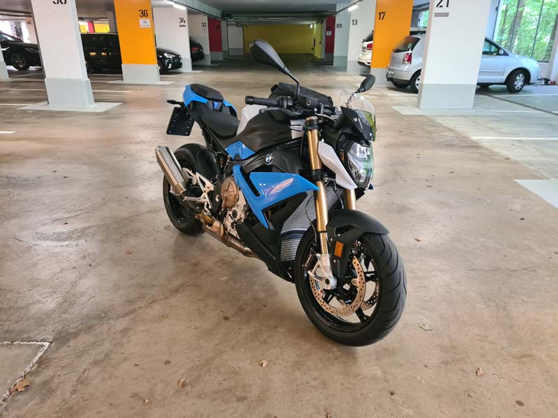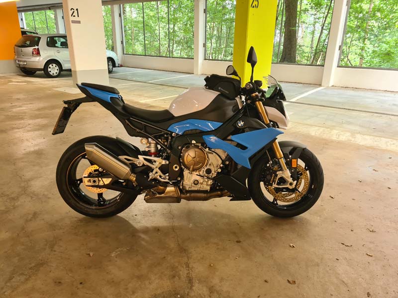 Ich verwende den BMW Tankrucksack mit einem Riemen vorne und hinten.