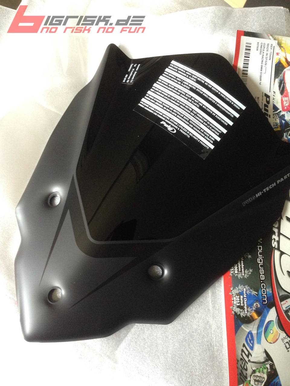 Ich finde die PUIG Racingscreen optisch gut gelungen und passend zum Design der Lampenmaske, die ja ebenfalls nicht jedermanns Geschmack trifft. Wer etwas Windschutz an der Nackten haben möchte, der muß halt da vorne eine Scheibe hinbauen. Mir sind 3 Leute die es Kacke finden lieber, wie ständig ein Kack-Moped zu fahren.