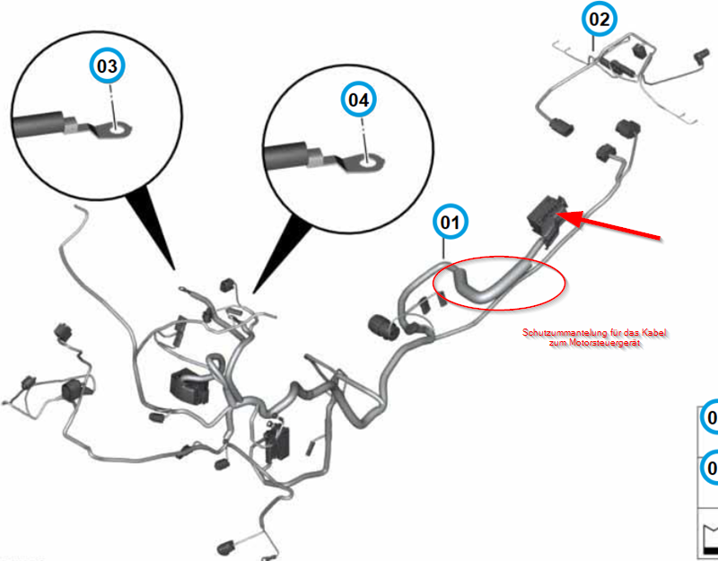 ich würde sagen der Kabelbaum liegt auf der rechten Seite, da da auch das Motorsteuergerät verbaut ist und die Kabelführung hier anscheinend stärker geschützt ist. Siehe Bild.