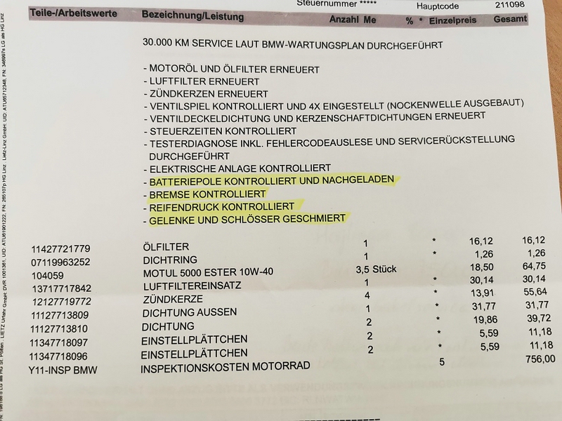 Als ich mein XR vom Jahresservice mit 27000 abgeholt und 284,- bezahlt habe, sagte mir die nette Dame am Schalter schon mit einem Grinsen, ich solle schon mal für die 30.000er sparen, die wird nicht ganz günstig