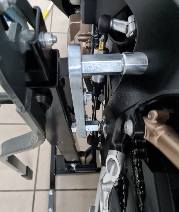 Habe nun nachgerüstet mit einer Flügelmutter um die Zentralschraube welche die Platte am Gestell fixiert, entlasten zu können, trotz Drehmomentanzugschlüssel mit 100Nm. So konnte ich nun in ganz kleinen schritten richtig einstellen, damit das Bike schön waagrecht steht.