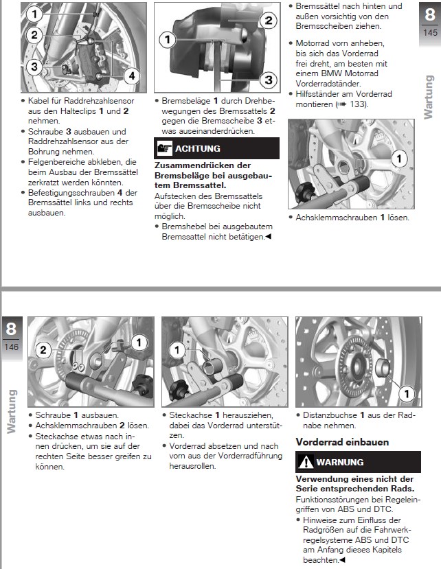 Ist aber auch genau in der Bedienungsanleitung beschrieben unter Wartung Vorderrad ausbauen/einbauen - und auf den Raddrehzahlsensor acht geben.