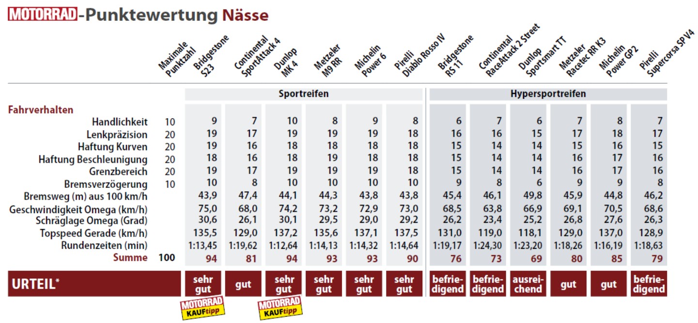 Die Laufleistung interessiert *mich* z.B. nicht im geringsten! Für mich als Tourenfahrer geht Naßgrip über alles und da ist mir der beste gerade gut genug: seit 13 Jahren praktisch durchgehend MPP (RR bzw. jetzt M-R). Einmal mangels Grip abgelegt ist teurer wie die Einsparung bei der Laufleistung. Ich orientiere mich da grundsätzlich an den (durchaus objektiven) Tests der motorrad.