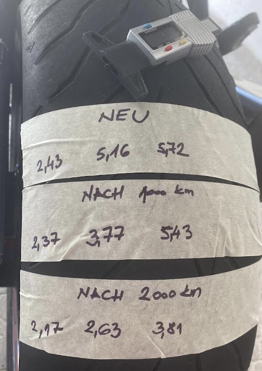 Wer in 2 Tagen und 1000km einen aktuellen Tourensportreifen runterfährt sollte mal seinen Fahrstil auf öffentlichen Straßen überdenken!![]()