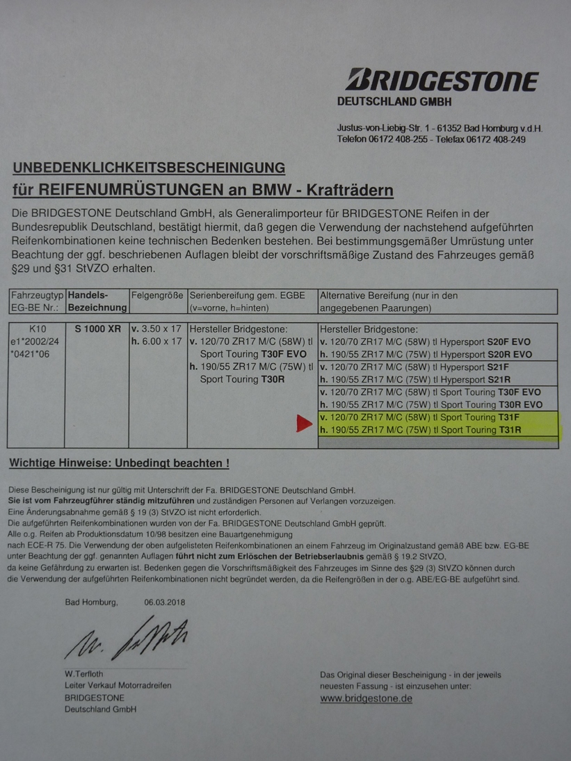 Zurück zu XR - S 1000 XR - Reifen - S1000XR - M 1000 XR