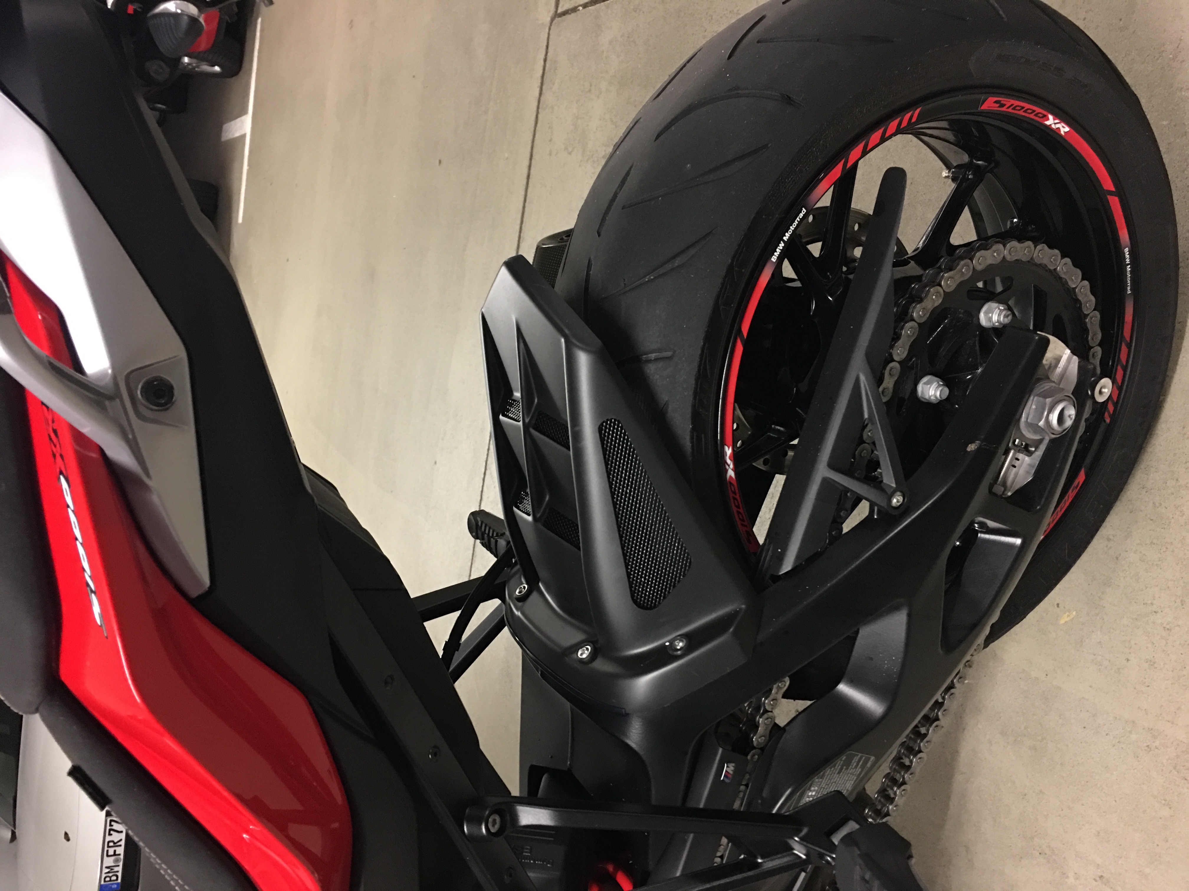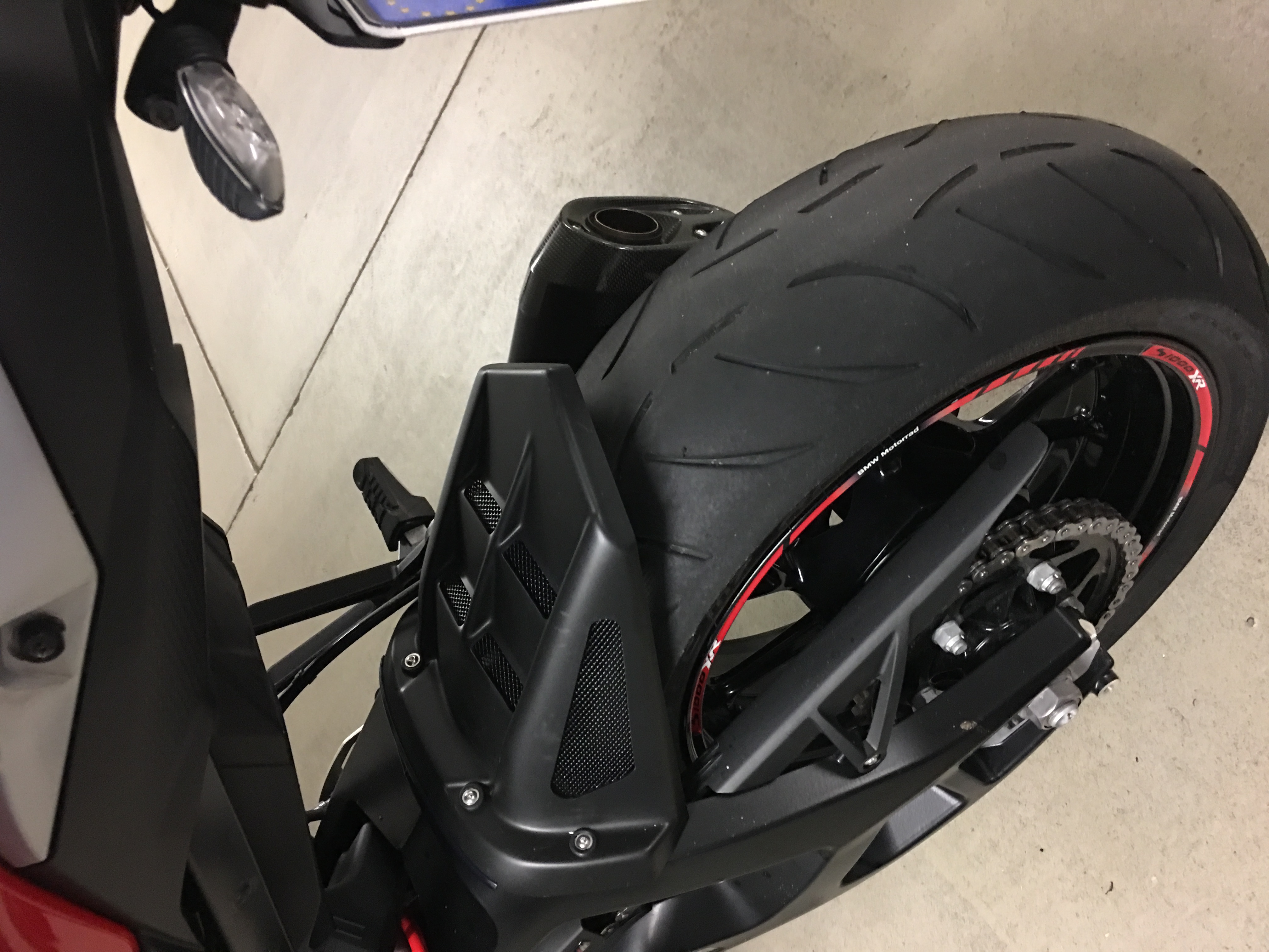 Ohne der originale Spritzschutz, auch mit dieser Wunderlich Hinterradabdeckung, wird die Jacke und Helm aber sehr schmutzig