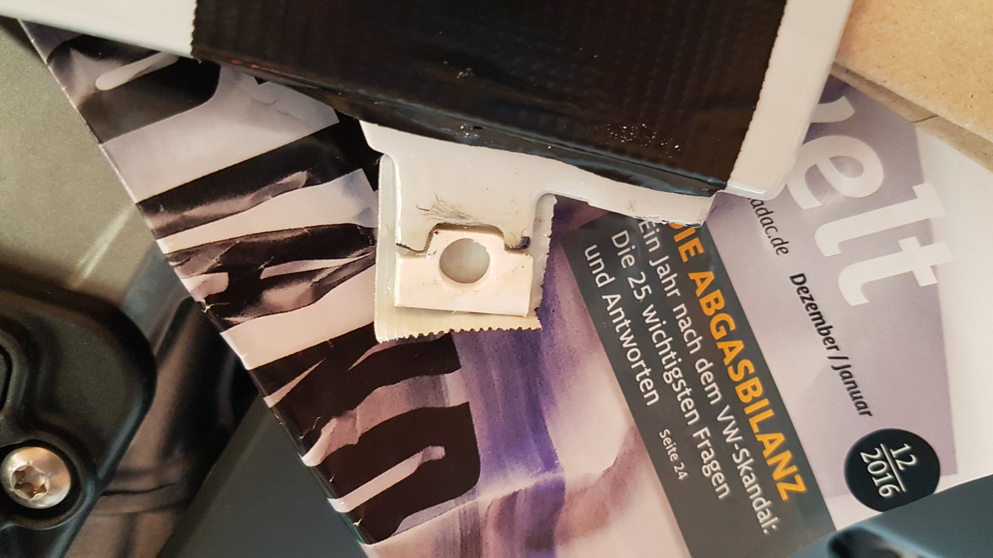 Das mit dem Metallclip zum 2 Verkleidungsteile zusammenschrauben ist zwar nicht sonderlich stabil, aber üblich. Wie sollte man das sonst lösen? Den Metallclip übermässig stabil zu machen bringt auch nichts, dann würde man bei zu festem Anziehen die Plastikteile beschädigen. Dann eher den Clip...