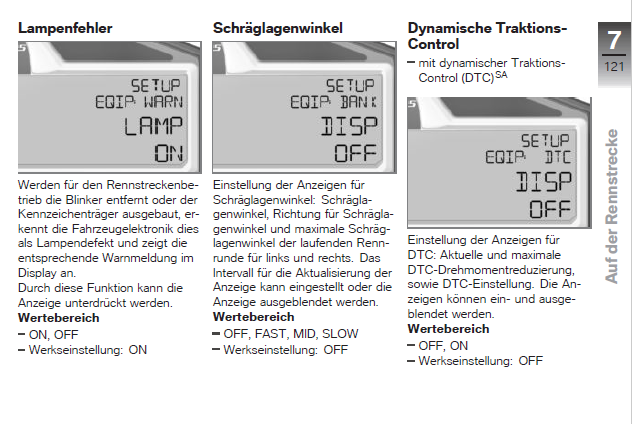 Wenn ich ca 1 Std unterwegs war und das Moped für ne kleine Pause abstelle und dann wieder in Betrieb nehmen möchte, steigt bei mir immer die Schräglagenanzeige im Cockpit aus. Die Bremsverzögerung und Reduzierung der Leistung funktioniert aber.