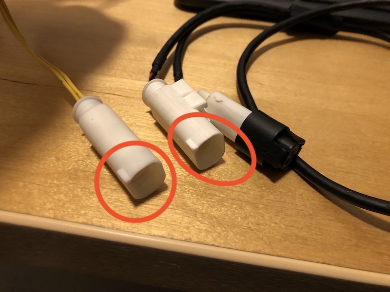 Du hast an dem Navihalter die abgebildeten Kabel (am bild die rechten beiden) und benötigst den Stecker mit den 3 gelben Litzen ,