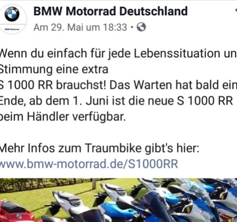 OSM62 hat geschrieben:Die aktuelle Situation mit der S 1000 RR erinnert mich an die Markteinführung der K 1200 S vor (wahnsinn ist das schon so lange her) 15 Jahren.