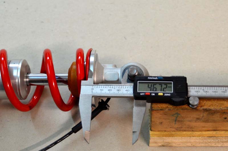 Ist die Feder im DDC-Fahrwerk so weit wie möglich entspannt, waren es bei meinen fahrfertigen 86 kg ganze 18 mm Negativfederweg. Viel zu wenig für eine ordentliche Führung der Hinterhand. Inzwischen muss sich was gesetzt haben, es sind jetzt 28mm. Aber immer noch einiges zu wenig.