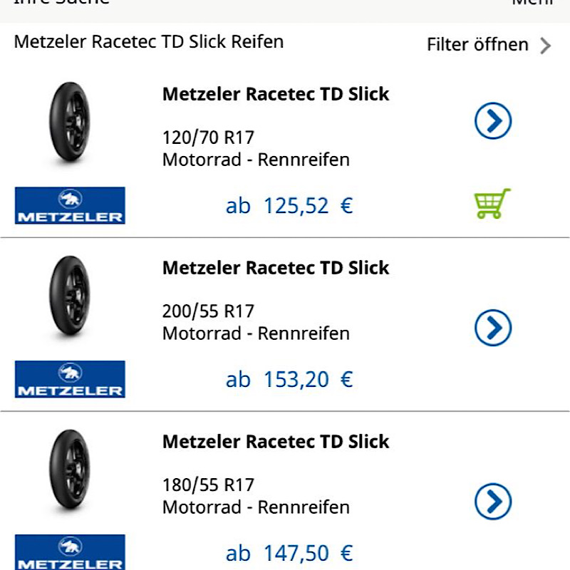 Preise sind auch günstiger als die Slicks von Pirelli, Dunlop etc.