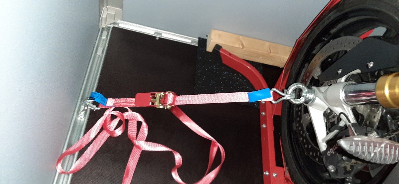 Meister Lampe hat geschrieben:Ich glaube einige wissen nicht was über 200 kg bei einem Aufprall mit 50 km/h machen ... ;-) , es sollten immer nach hinten 45 Grad zwei Gurte von 2 T Zurrkraft verwendet werden und dann nicht in so einer Kinderschiene die gerade mal 50 kg hält , sondern durch den Boden und durch eine U-Träger montiert sein , wenn man das Moped nicht unfreiwillig im Zugfahrzeug haben will ... ;-) Gruß Uwe Bild