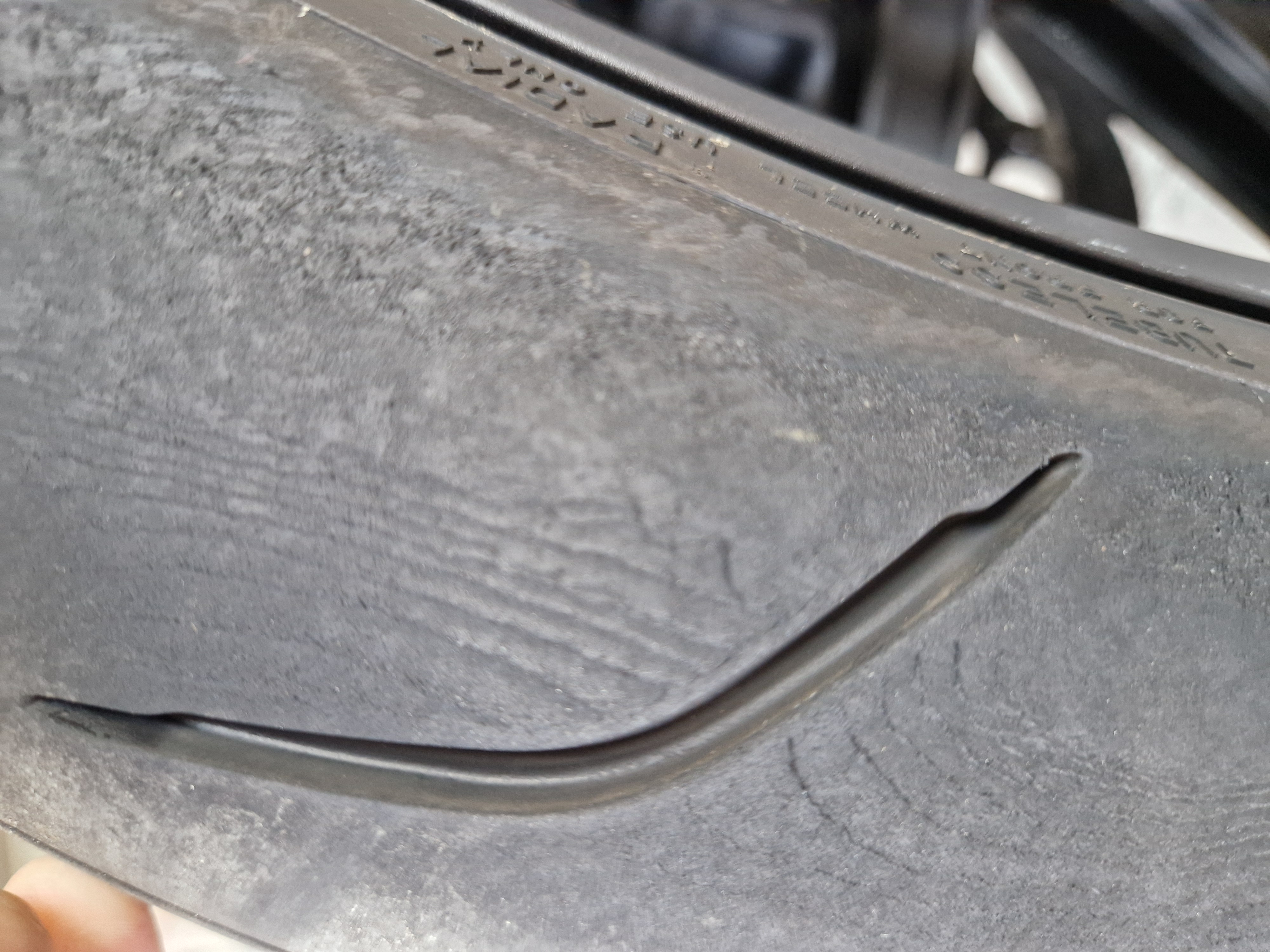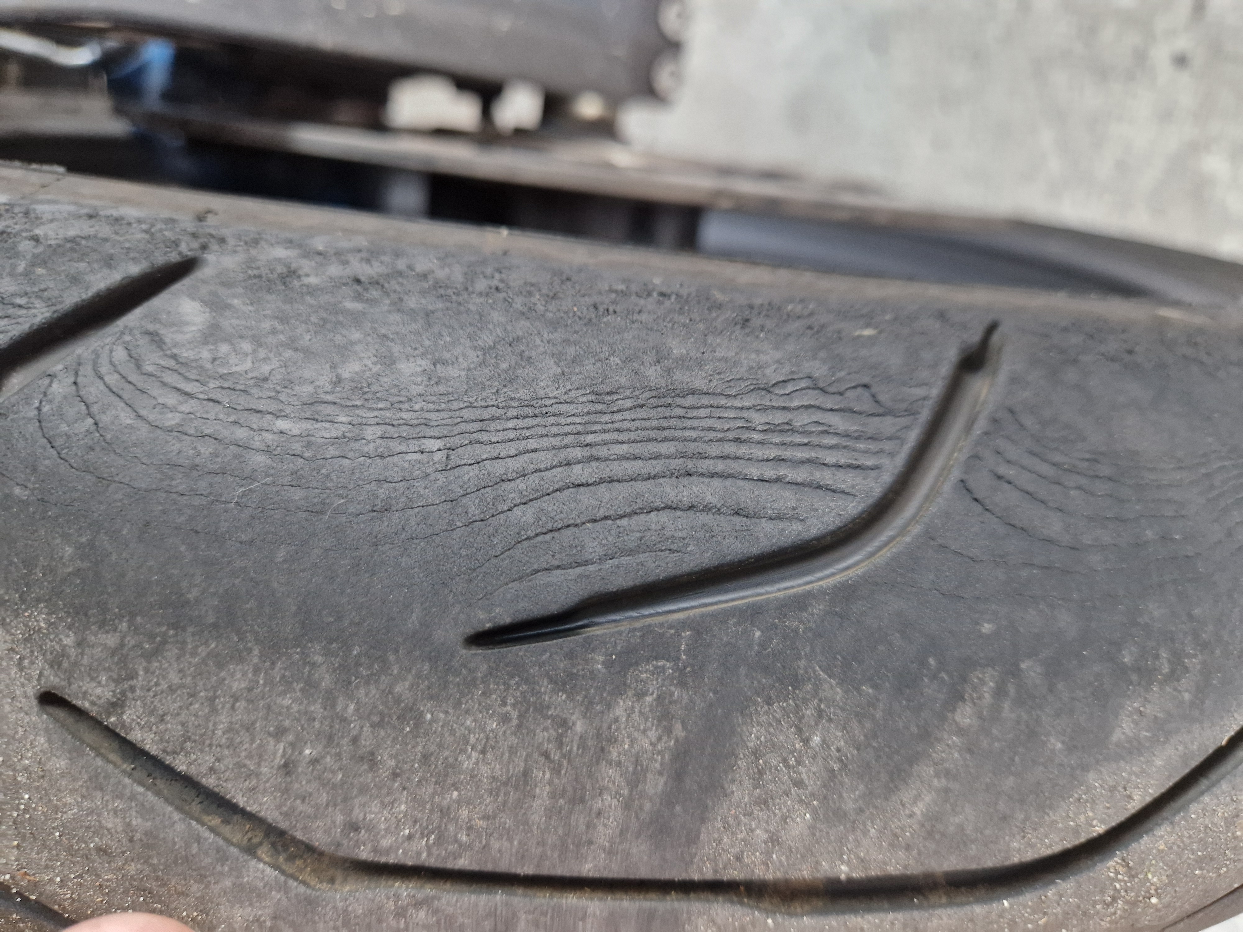 Bei Deinen ersten Bildern dachte ich, das wären Riefen im Reifen. Aber auf den neueren Bildern sieht man, dass das Grate sind, also nach oben wegstehen.