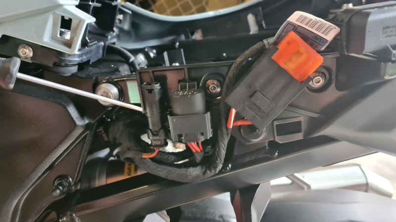 Leider passt der bisherige Stecker für Sonderzubehör bei BMW 1-1703498-1-PT von Fa. TE nicht an der S1000XR, da zumindest die Fahrzeugbefestigungs-Rastnase des TE-Steckers eine andere ist als die, die fürs die XR gebraucht wird.