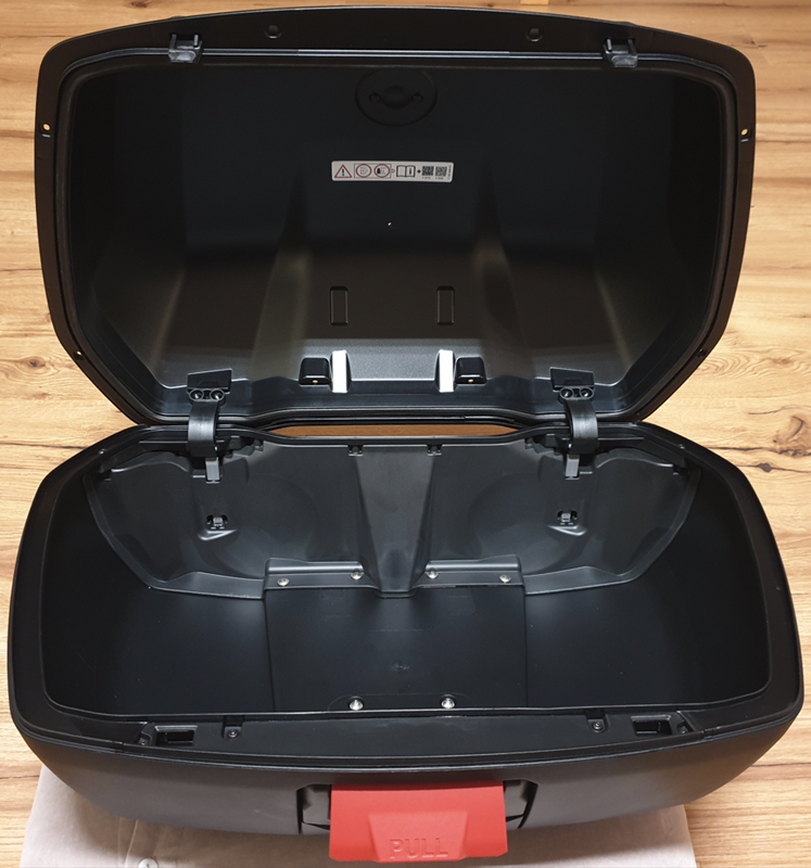 Nexlis hatte am 10.08.2020 den Topcase klein 30 Liter mit der Aussparung gezeigt, das gibt es nun auch für den 49 Liter Topcase.
