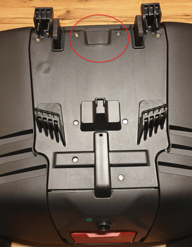 Wie habe ich das Problem mit der alten Trägerplatte gelöst? Ich habe ca. 7 mm im Bereich der "Nase" aus der Trägerplatte rausgeschnitten ( siehe Fotos ) und so läßt sich der 49 Liter Topcase jetzt sehr einfach aufsetzen und festklemmen.