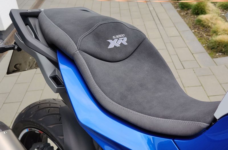 Das ist die originale tiefe Sitzbank von BMW, allerdings war mir der Originalbezug etwas zu rutschig und sah so billig aus.
