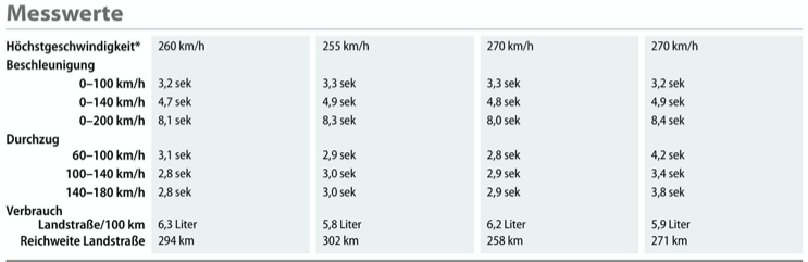 Anbei mal die Durchzugswerte der alten XR und dann noch der R aus dem jüngsten Vergleichstest. Spalten: Aprilia, BMW, Ducati, KTM. Krass wieviel die R besser zieht.