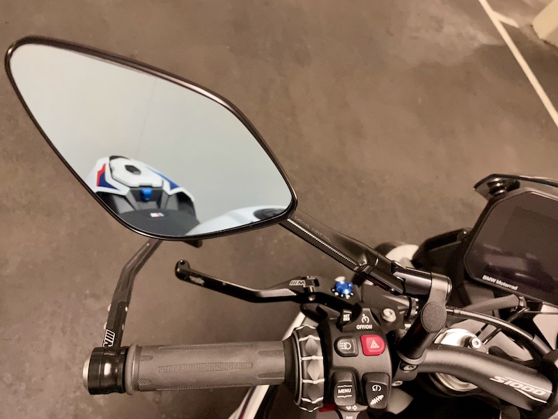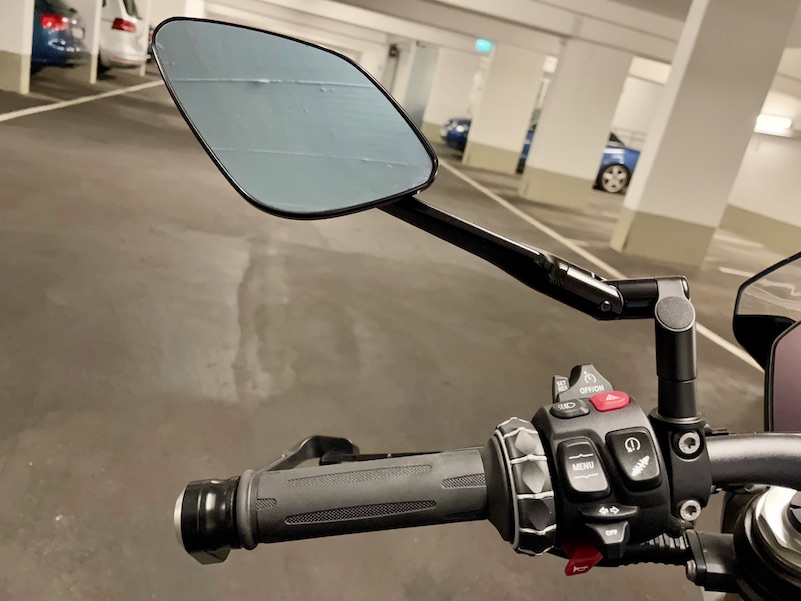 Ich bin jetzt zufrieden, auch wenn ich bei einem Naked Bike Lenkerendenspiegel optisch am besten finde. Allerdings sehe ich darin zu wenig, ohne den Kopf zu bewegen. Da ich sehr viel Spiegelbeobachtung auf den rückwärtigen Verkehr habe, nervt mich das irgendwann.
