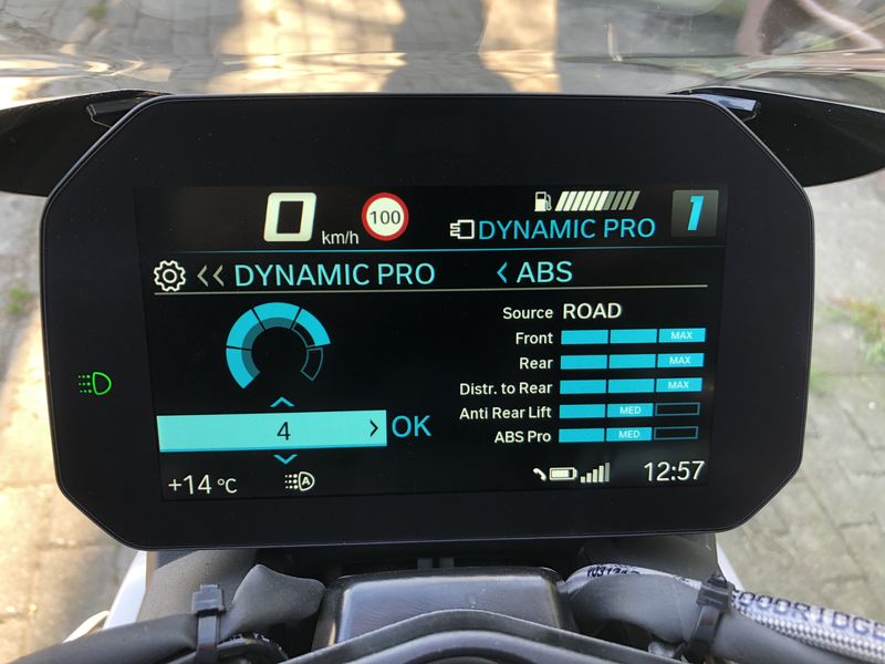 lt. meinem Händler ist das Kurven ABS nicht im Dynamic Pro Modus aktivierbar...ich kann allerdings bei den ABS Einstellungen im Dynamic Pro Modus das ABS auf Max stellen....und dann wird ebenfalls ABS PRO MAX angezeigt.