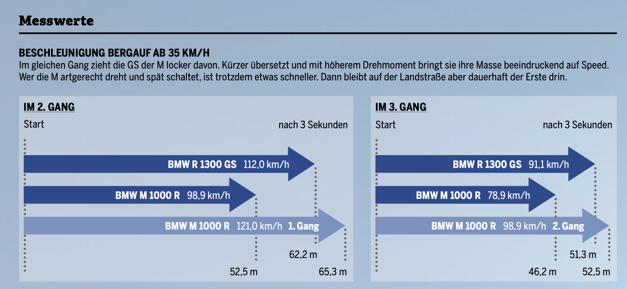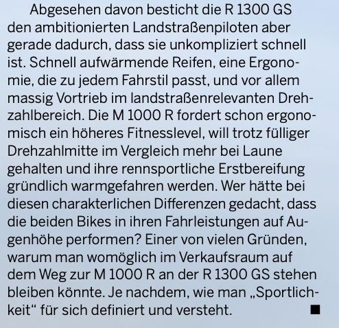 die "PS" hat unlängst die M und die GS auf der Landstrasse bezüglich Performance verglichen. Gleichstand