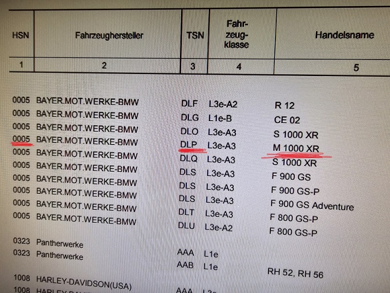 gibt es schon die Schlüsselnummern von der M1000XR?