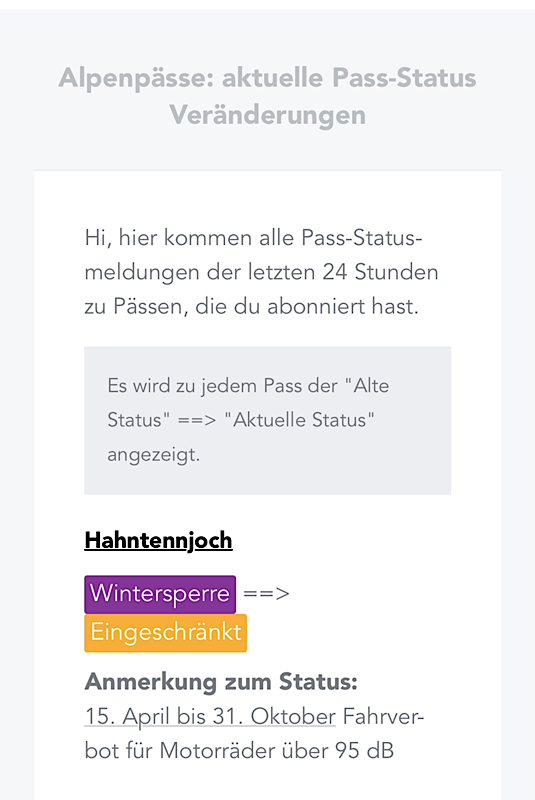 Perspektivisch setze ich auf Hybrid-Bikes. Innerorts/an Hotspots (sowie irgendwann in weiten Teilen Tirols, wenn 90/85/80/?? dB gelten) elektrisch, dann auf Verbrenner umschalten. Best of both worlds, Umweltfaktor mal beiseite gelassen. Meine bei den Motorrad Nachrichten dazu kürzlich was gesehen zu haben, finde das Video leider gerade nicht.