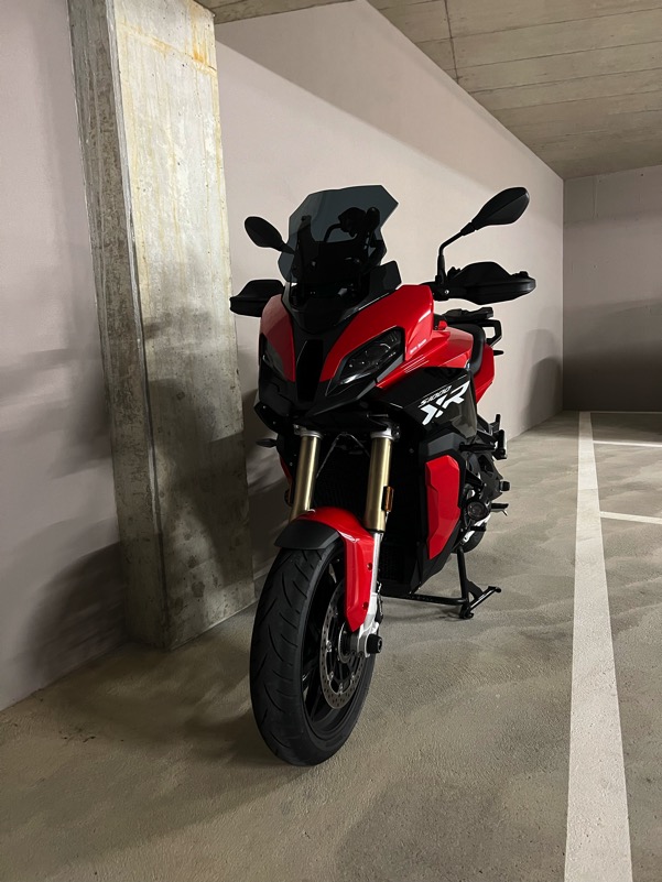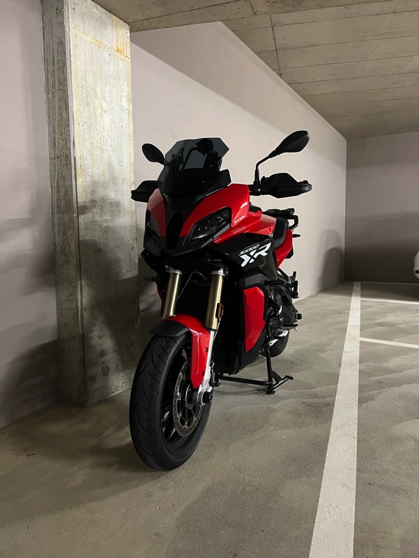 Es wird eine S 1000 XR in Racing Red Uni mit Schmiederädern, Zusatzscheinwerfern, hohem Windschild und mit Seitenkoffern mit Blenden in Blackstorm Metallic werden. Details zur Konfiguration findet ihr hier: https://mein.bmw-motorrad.ch/mcze81pq