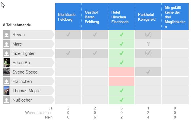 Die Umfrage für die Übernachtung ist abgeschlossen.