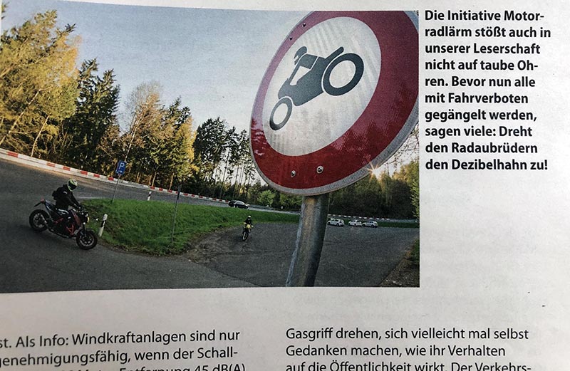 das Thema wird auch in der aktuellen MOTORRAD besprochen. Die Leserbriefe sind entsprechend. Und die, die mich im Lauf dieses Threads beschimpft haben, sollten einfach noch mal in sich gehen und mal nachdenken - und ich zitiere einen Leserbrief - nicht vielleicht doch "zu einer kleinen Gruppe Egomanen gehören, für die es keinerlei Bedeutung hat, was andere Menschen empfinden"