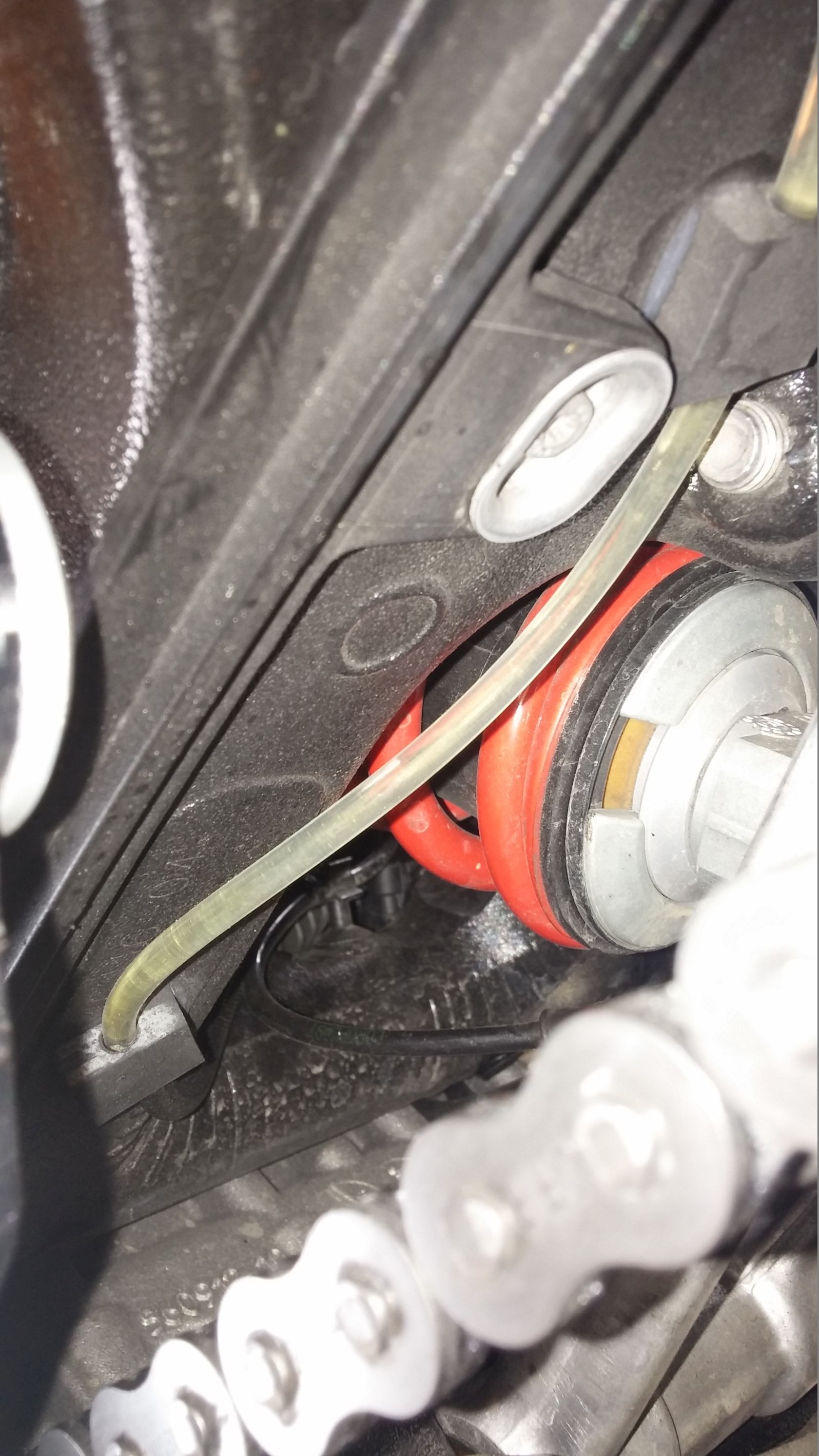 Die Schlauchführung geht im Umlenkpunkt exakt an der gleichen Stelle vorbei wie das Kabel vom ESA Federbein.