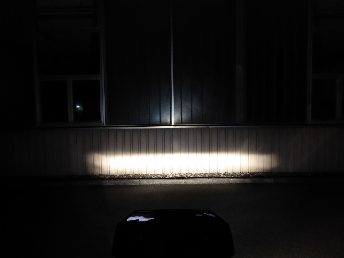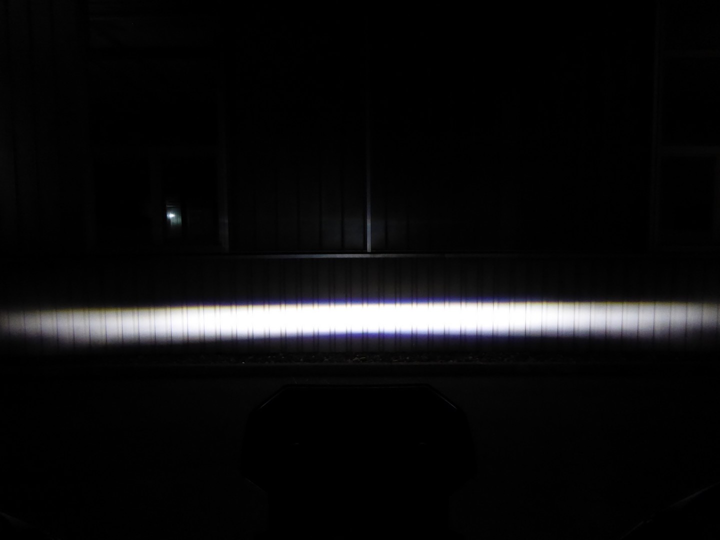 Vorweg war ich wenig optimistisch, da mir die Dinger tagsüber schon den Eindruck machten, als würden sie nur einen Lichtschlitz ausstrahlen. Eigentlich wollte ich ja eher eine bessere Ausleuchtung unmittelbar vor dem Motorrad. Zum Glück hat sich herausgestellt, dass mein Wunsch komplett falsch war.
