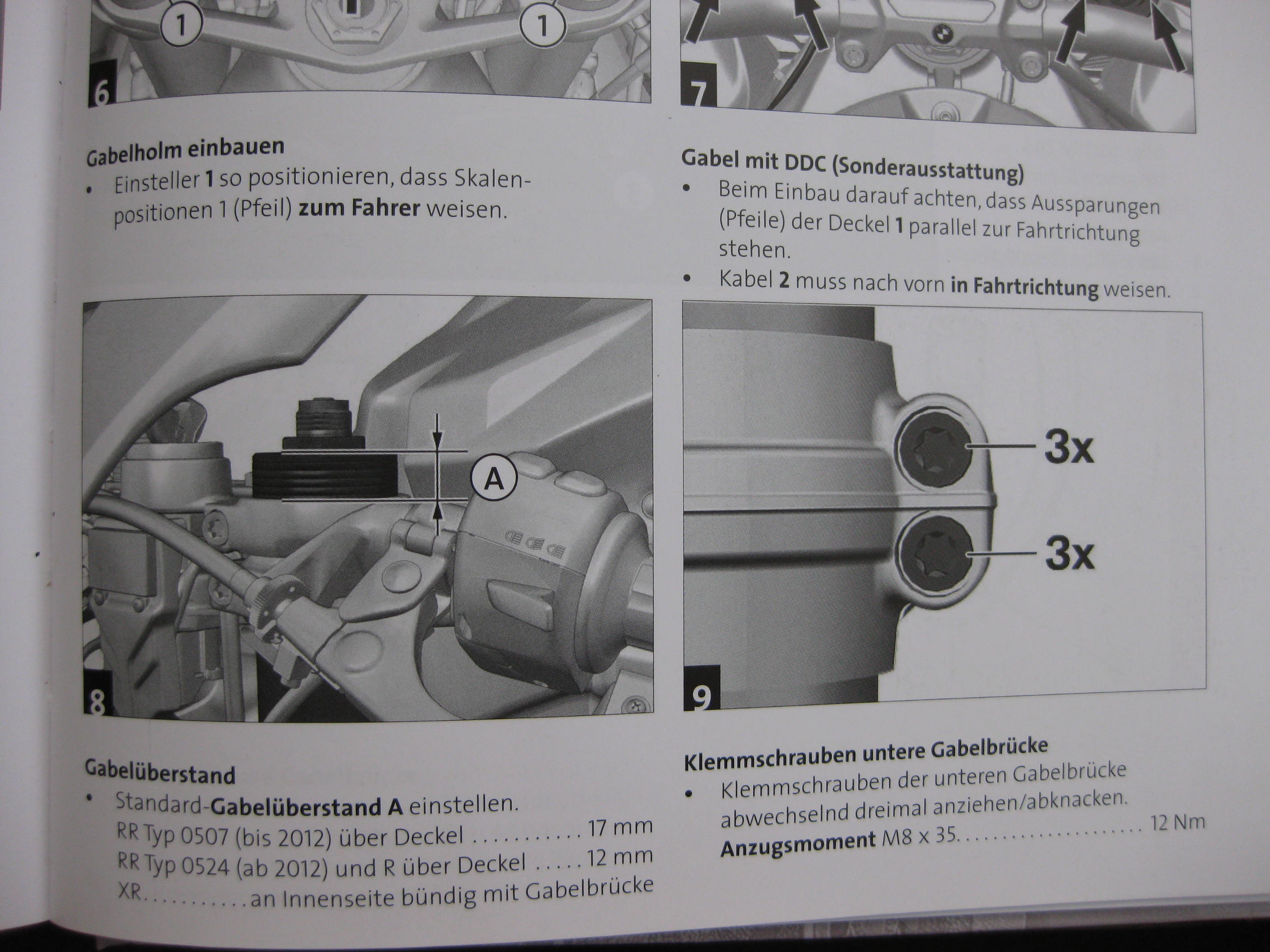 Gabelrohrüberstand in Gabelbrücke oben mit Deckel 12mm = bei mo korrekt beschrieben.