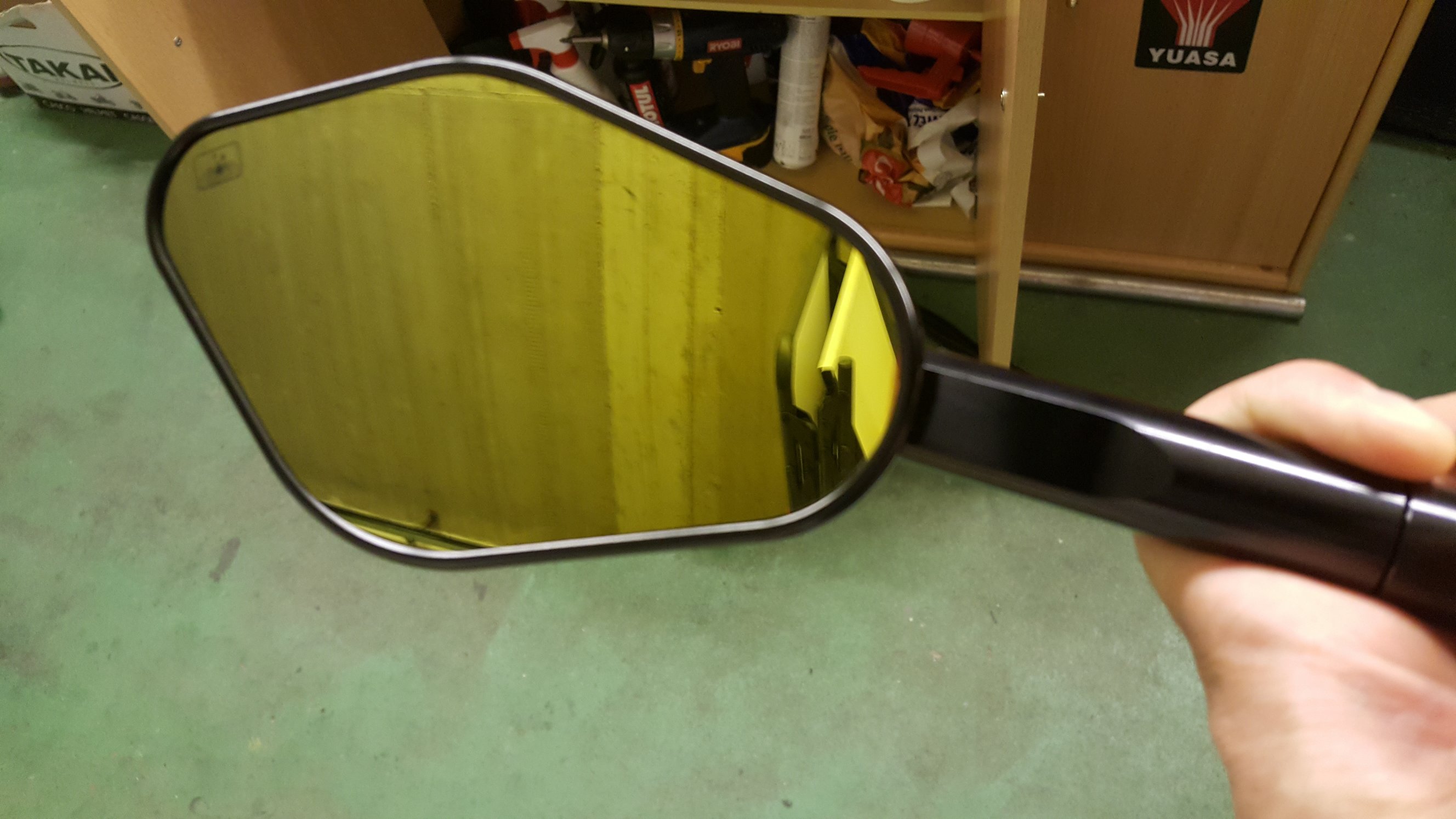Spiegel scheinen schon original zu sein,- das Glas gelb, die Tröpfchen in der Ecke...