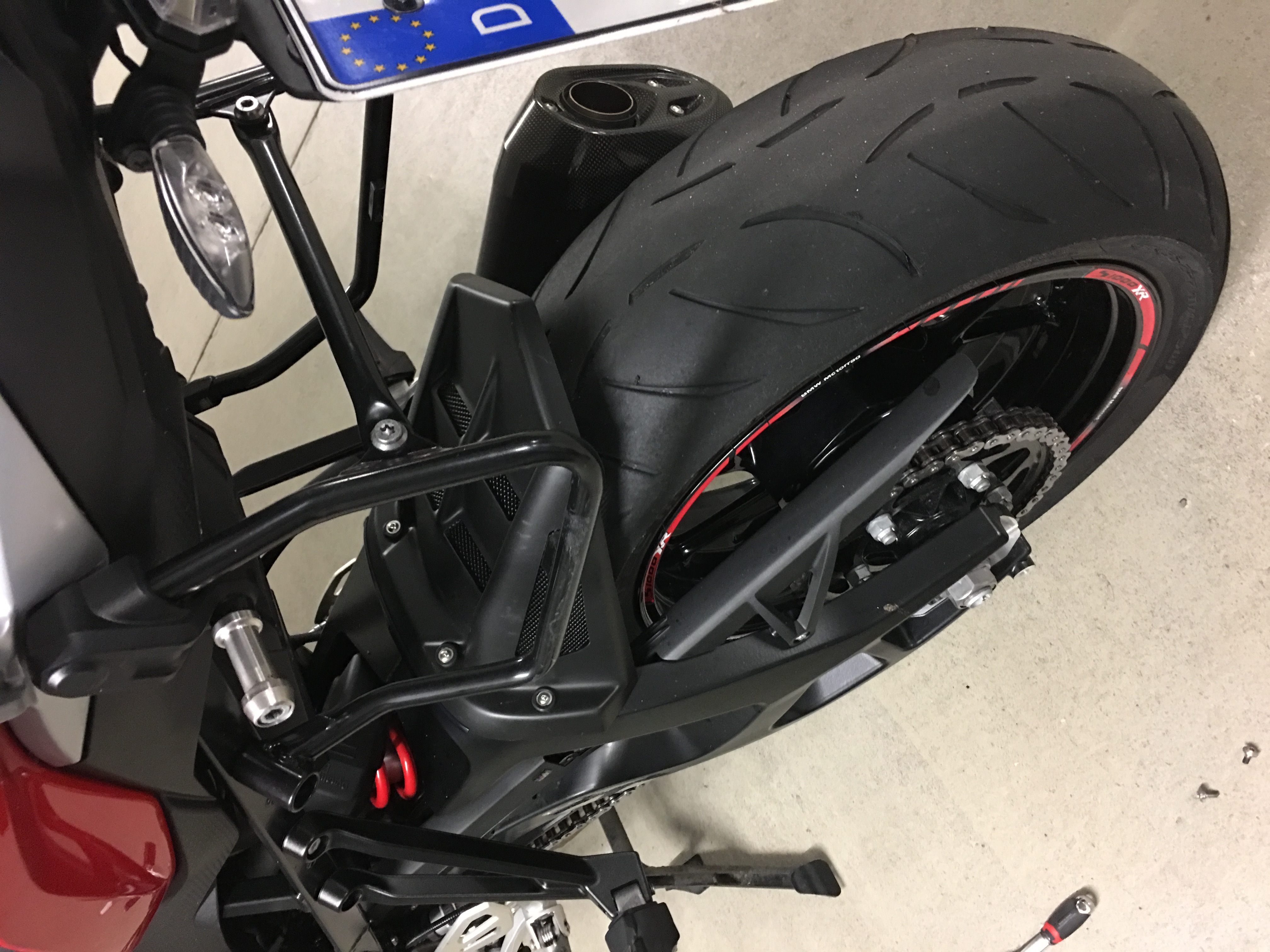 Ohne der originale Spritzschutz, auch mit dieser Wunderlich Hinterradabdeckung, wird die Jacke und Helm aber sehr schmutzig
